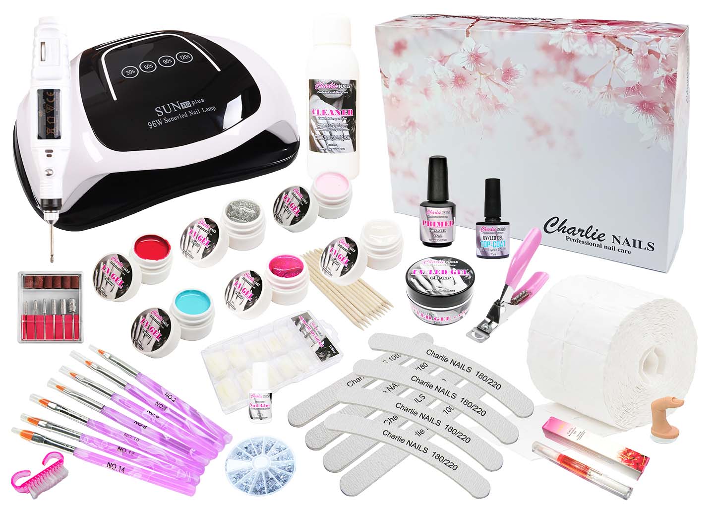Velmi oblíbená sada na gelové nehty. Je vhodná pro začátečníky i professionály s velmi výkonnou a prostornou UV/LED lampou 96W pro dvě ruce v elegantní černo-bílé barvě, praktickou el.bruskou o výkonu 10W, aby vás již nikdy neboleli ruce z pilování, 2ks.+6ks. UV/LED gelů s vlastním výběrem barev a veškerým potřebným vybavením pro krásné nehty v pohodlí domova zvládne každý pomocí podrobného návodu. Příslušenství je pro vás uloženo v praktickém designovém boxu.