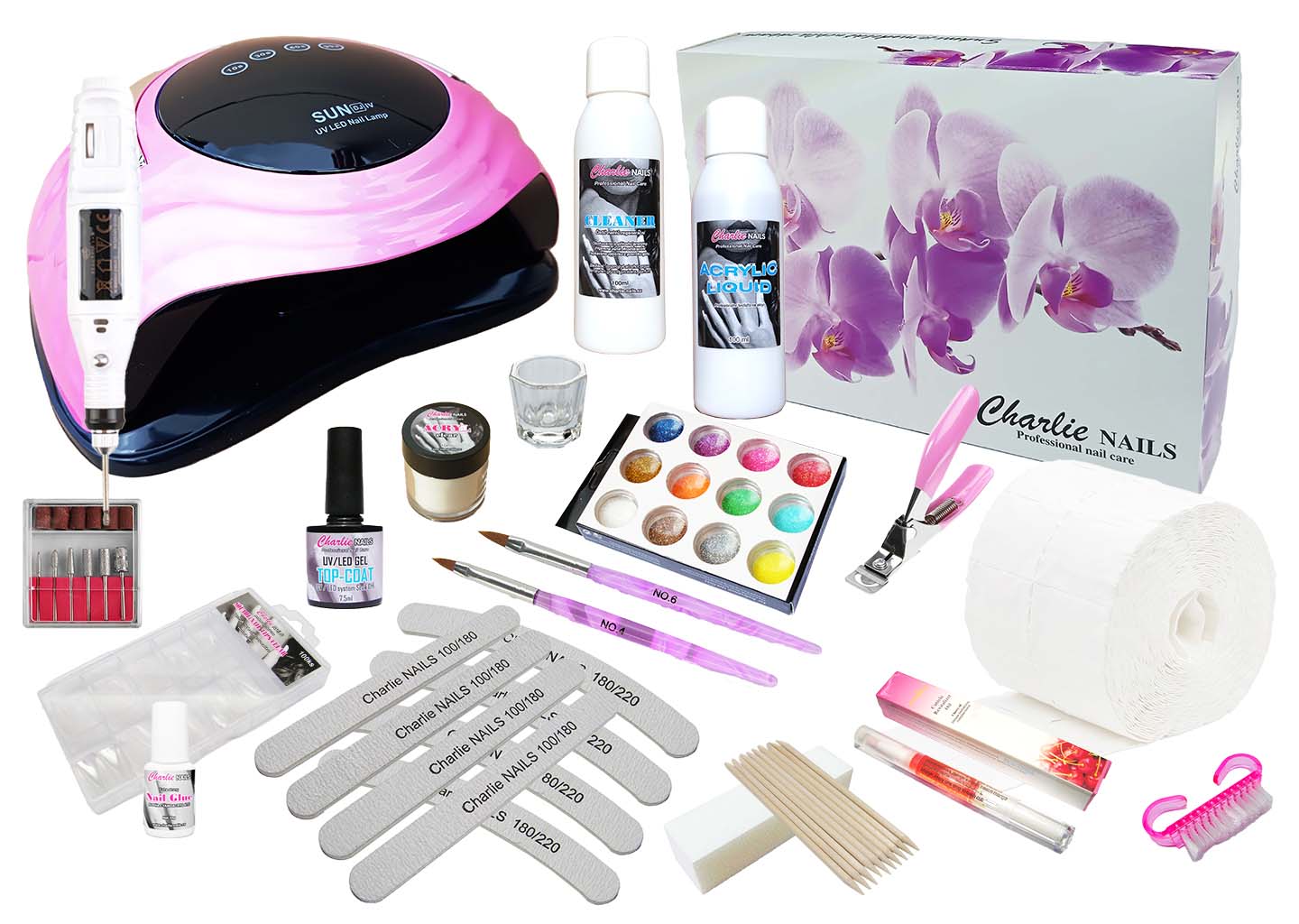 Akrylová sada na nehty vytváří velmi pevné a odolné nehty. Je vhodná pro středně pokročilé i professionály s velmi výkonnou UV/LED lampou 168W v oblíbené růžové barvě, praktickou el.bruskou o výkonu 10W, aby vás již nikdy neboleli ruce z pilování a veškerým potřebným vybavením. Pomocí akrylu docílíte krásných a velmi odolných nehtů s možností prodloužení na umělé tipy chráněné UV/LED gelem pro jejich dlouhou životnost. v pohodlí domova zvládne každý pomocí podrobného návodu. Příslušenství je pro vás uloženo v praktickém designovém boxu.