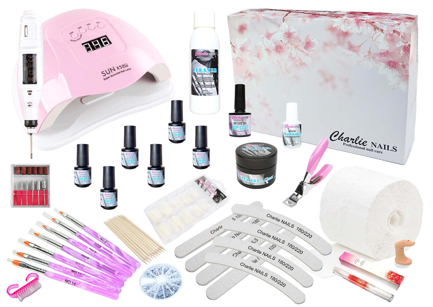 Hybridní sada na gelové nehty. Je vhodná pro začátečníky i professionály s velmi výkonnou UV/LED lampou 120W v oblíbené růžové barvě, praktickou el.bruskou o výkonu 10W, aby vás již nikdy neboleli ruce z pilování, 2ks.UV/LED gelů + 6ks. UV/LED gel laků s vlastním výběrem barev a veškerým potřebným vybavením pro krásné nehty v pohodlí domova zvládne každý pomocí podrobného návodu. Příslušenství je pro vás uloženo v praktickém designovém boxu.